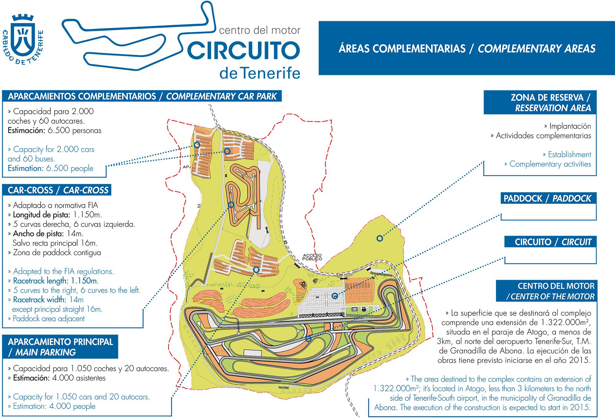 Neues Megaprojekt für die größte Kanareninsel: Teneriffas lokale Inselregiereung schreibt einen Konzessionsvertrag für öffentliche Arbeiten rund um den Bau der Rennsportstrecke "Circuito de Tenerife" in Granadilla de Abona sowie einen nördlichen Zugang zur Strecke aus. Außerdem werden gleichzeitig Geldgeber und Investoren gesucht. Die Anlage wird mit einem Budget von 25,7 Millionen Euro für eine Laufzeit von 40 Jahren geplant. Die Ausschreibung wurde im EU-Amtsblatt (DOUE) am 12. September 2014 und dem spanischen Amstblatt BOE am 20. September 2014 veröffentlicht.