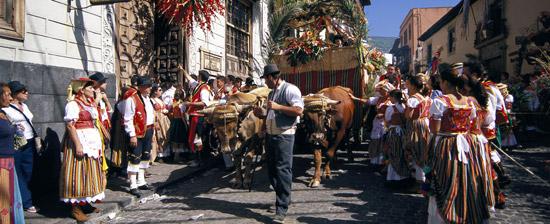 Am folgenden Tag, den Día de la Ganaderia, haben die Bauern aus dem Umfeld La Orotavas ihren großen Auftritt. Gemeinsam mit ihrem Vieh kommen sie in die Stadt und bitten den Heiligen San Isidro um Segnung.
