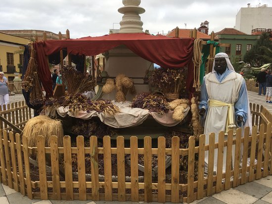 In La Orotava sieht man bereits seit Ende November wieder die große Weihnachtskrippe auf dem Rathausplatz. Die Krippe ist aber noch nicht vollständig, denn das "Christkind" wird selbstverständlich erst am 24.Dezember dazugelegt.