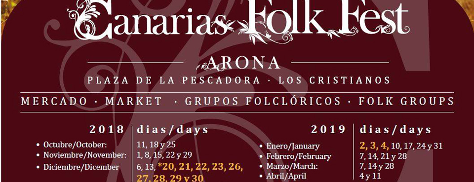 Jeden Donnerstag vom 11. Oktober 2018 bis 11. April 2019 werden im Rahmen dieser neuen Ausgabe des Canarias Folk Fest auf der Plaza de la Pescadora in Los Cristianos Traditionen, Gastronomie und die beste Folkloremusik dargeboten.