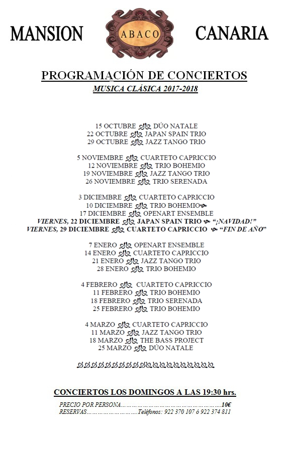 Jeden Sonntag findet in der Casa Ábaco ein klassisches Musikkonzert von Mitgliedern des Teneriffa Symphonie Orchesters statt.