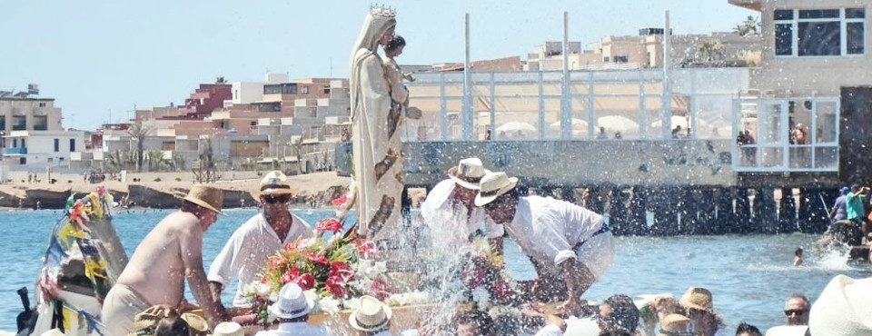 Im Fischerdorf El Médano begleiten die "romeros" in ihren typischen Fischerkostümen den Schutzpatron zum Strand, wo die emotionale Einschiffung stattfindet. Eine der aufregendsten traditionellen "romerías" der Insel, in der man auch die Musik der Parrandas und das gute kanarische Essen genießen kann, das die Nachbarn für diesen Tag vorbereiten.