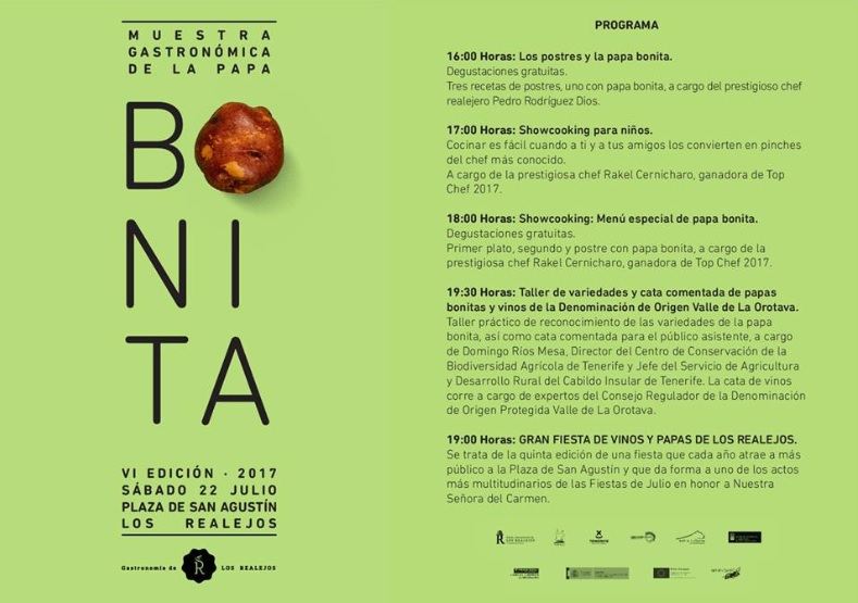 Die Stadt Los Realejos, der Kontrollrat Valle de la Orotava, das Büro Turismo de Tenerife und die Vereinigung Growers Papst Nizza bringen die traditionellen Kulturen von Icod el Alto auf dieser Ausstellung zum Ausdruck. Die schöne Kartoffel, "Papa Bonita", wird in all ihren Formen und Farben von verschiedenen Betrieben dargestellt, eben so ihre Verarbeitung und Zubereitung. Zusammen mit Weinen aus der Region ein sehr angenehmes Fest.