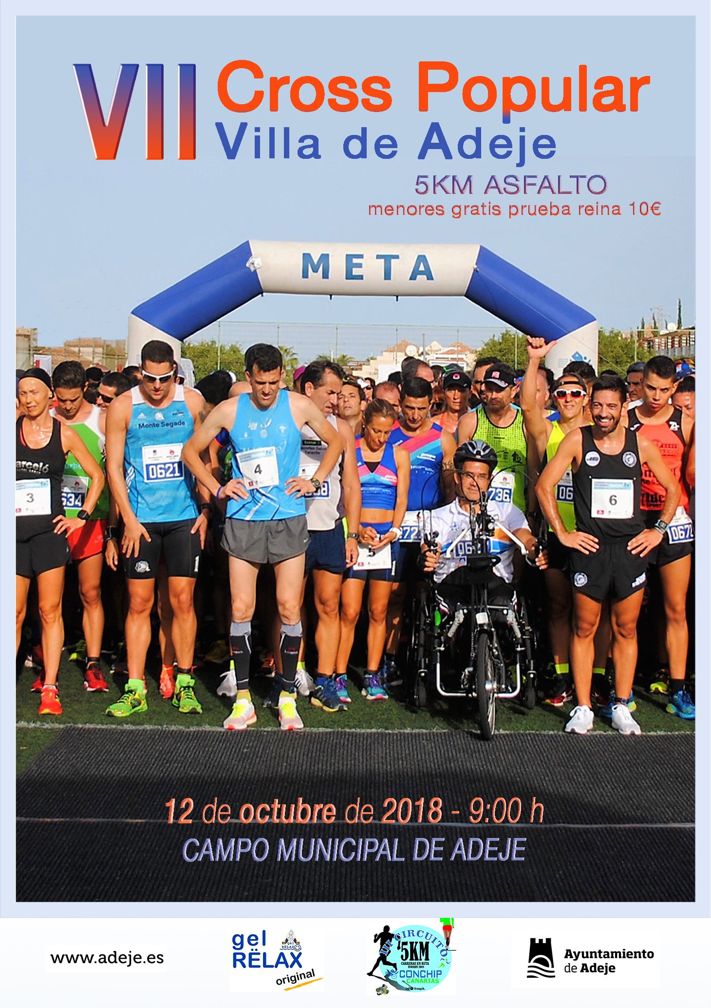 Siebte Ausgabe des Cross Popular Villa de Adeje, einem Lauf, der als 8. Wettkampf zum III. Kanarischen 5 km Conchip-Zirkel von Teneriffa 2018 zählt. Die Strecke verläuft über einen 5 km langen Asphaltkurs und ist für die jüngsten Teilnehmer/innen kostenlos, während die Erwachsenen des Hauptlaufs 10,- € Stargeld bezahlen.