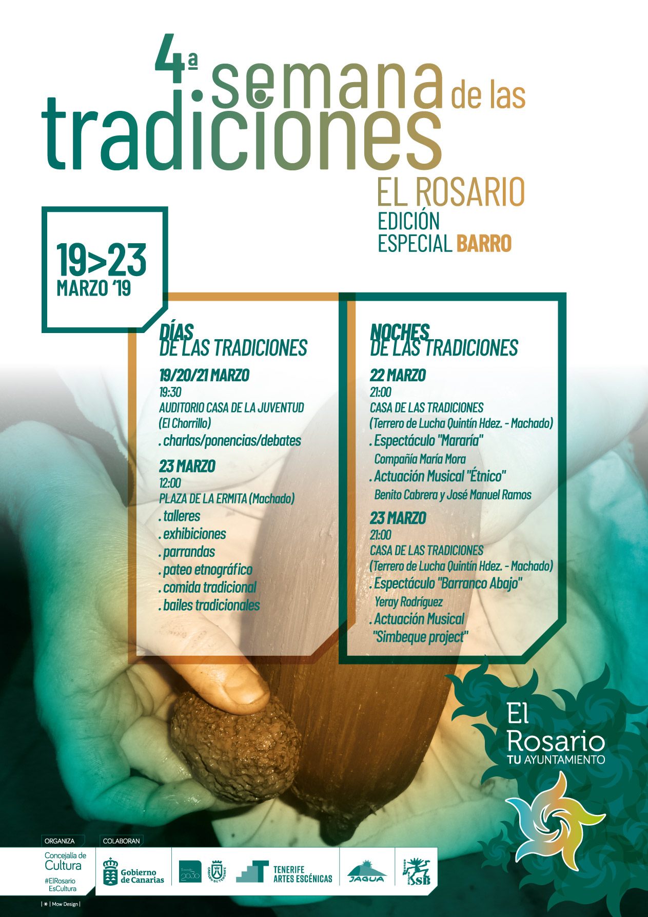 Die Plaza de la Ermita de Machado und ihre Umgebung wird dann am Samstag Veranstaltungsort eines breiten Spektrums an Brauchtum, Traditionen, Tänzen, Spielen, traditionellen Sportarten und kanarischem Kunsthandwerk sein. Mit dabei sind diesmal Mararía, Étnico, Yeray Rodríguez und das Simbeque Project.