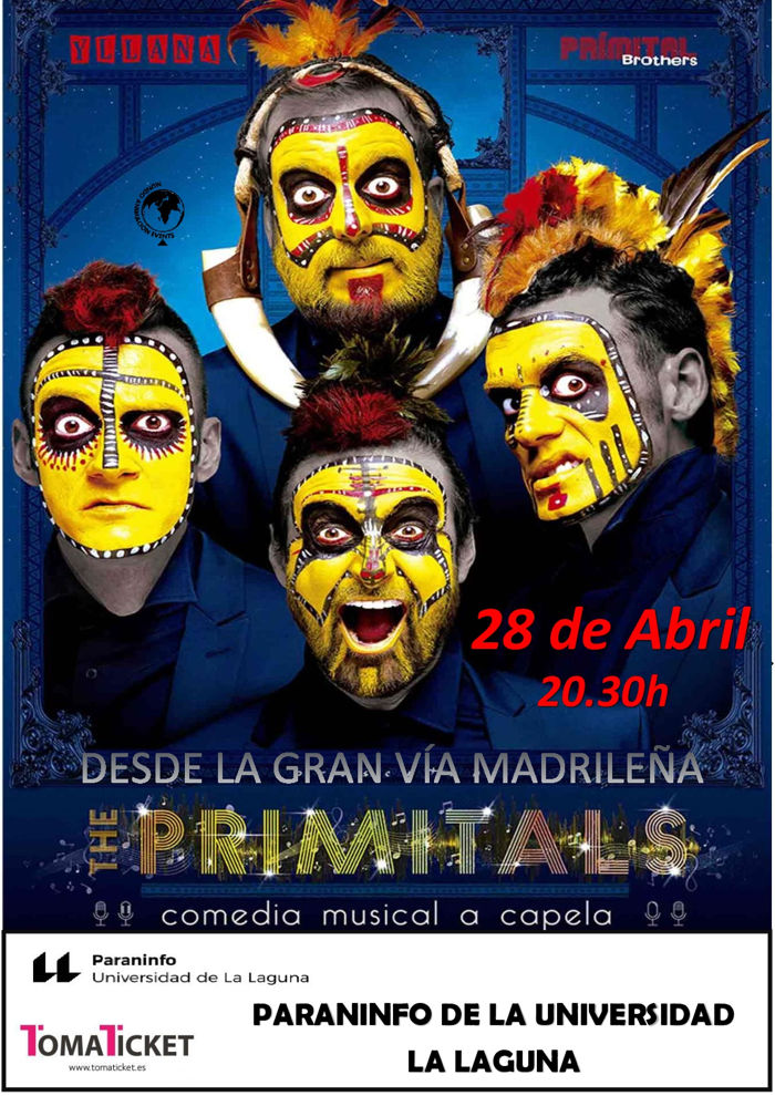 Yllana und die Primital Bros vereinen ihre Kräfte (und ihr Talent), um Sie mit The Primitals zu überraschen - eine urkomische A-Cappela-Musikkomödie mit Wesen aus einer vergangenen Zeit, die viel weiter zurückliegt, als Sie sich vorstellen können! Vier Ureinwohner eines Planeten, der der unsere sein könnte, treten auf die Bühne und versuchen alles nur Erdenkliche, um das Publikum zu erobern, sei es mit Humor oder mit brutaler „Gewalt“.